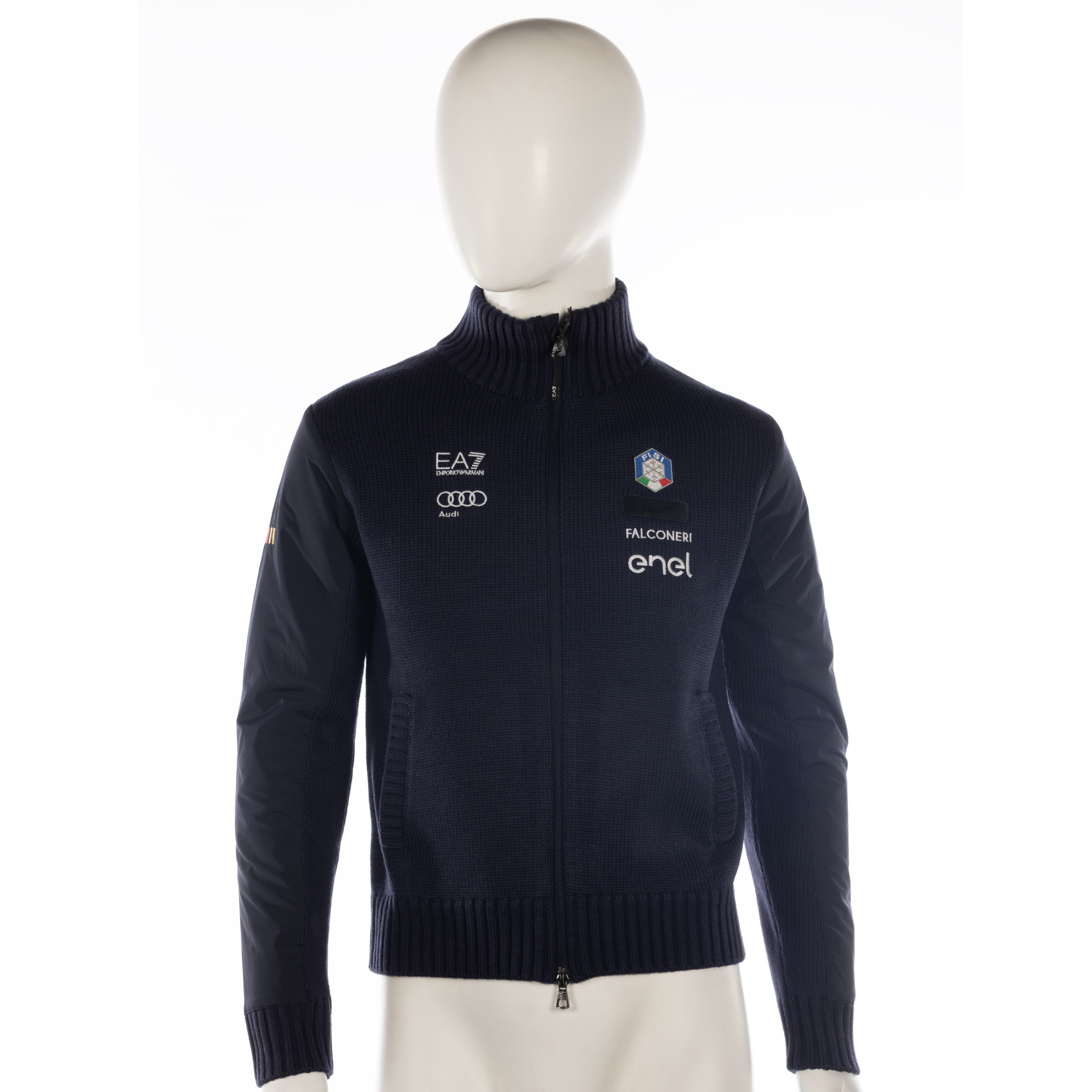 Felpa in lana EA7 FISI nuova di Matilde Lorenzi, stagione 2024/2025, taglia M, colore blu scuro.