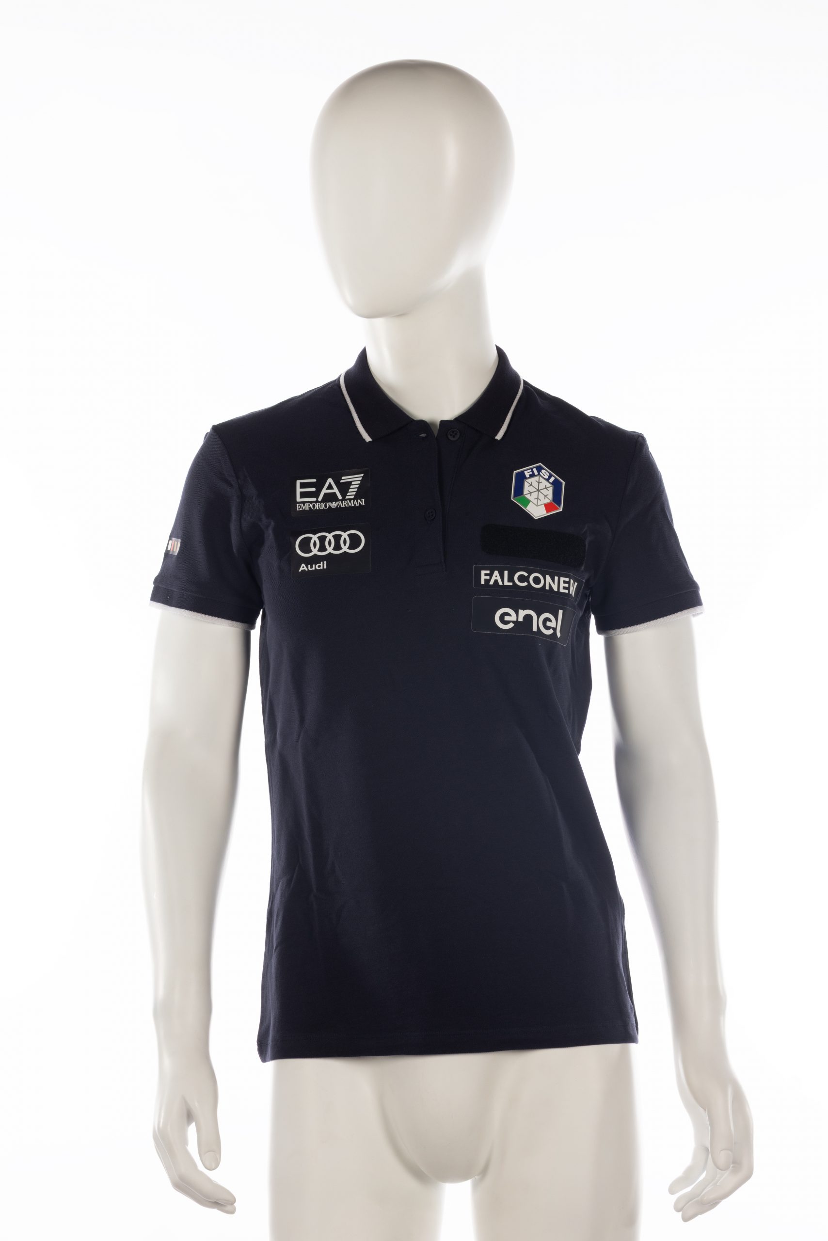 Polo EA7 FISI nuova di Matilde Lorenzi, stagione 2024/2025, colore blu scuro, taglia M.
